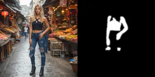 For Person B, we must create a mask for the parts/clothes where the replacement should happen. This is done by using image segmentation to generate a mask of the segmented parts of the image. This time, we use the clothes segmentation from https://github.com/1038lab/ComfyUI-RMBG/tree/main since it allows us to specify body parts and regions more freely. In this case, we also want to use a more narrow mask and a bit of blur for the mask because this mask will be used for the Flux.1 Fill model to be inpainted. The blur helps smooth edges, leading to a better output quality. Following are some examples of masks created by fashion segmentation, which allow us to also mask body parts like arms/legs that are not covered by clothes.