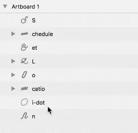 Now it’s time to think about the final image and you have to decide which elements will be animated. I chose to only animate the capital letters and the Ampersand. The other elements don’t necessarily have to be a single layer and can be combined to one shape. Again, this makes it easier when we export the file as SVG. In this example, I combined o, cation, i-dot, and n so that I have a single layer that can be named ocation. My preferred way to do the combining is by simply dragging one layer onto another.