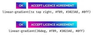 Since the angle here depends on the width of the element, you should be careful when defining a gradient for a button, for example. Different widths can easily result in a non-homogeneous look. Especially if you want the gradient to be parallel to some other line in your design.