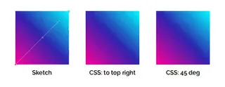 The important thing here is that neither of the two CSS options behave as they do in Sketch. The gradient in Sketch has an angle of about 71.5 degrees (If you're genuinely interested: this is the arc tangent of 3/1 ). In the to-top-right version, the angle is about 18.5 degrees (that is 90 - 71.5 or arc tangent of 1/3).