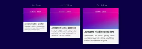 }Not much has changed so far. The custom property --fs is used as a variable (like a variable known from preprocessors like Sass), and its value is placed as a reset-value for font-size on the block level. It gets really interesting, once you change the value of the custom property. Let’s say we use a modifier class and increase the font-size:
